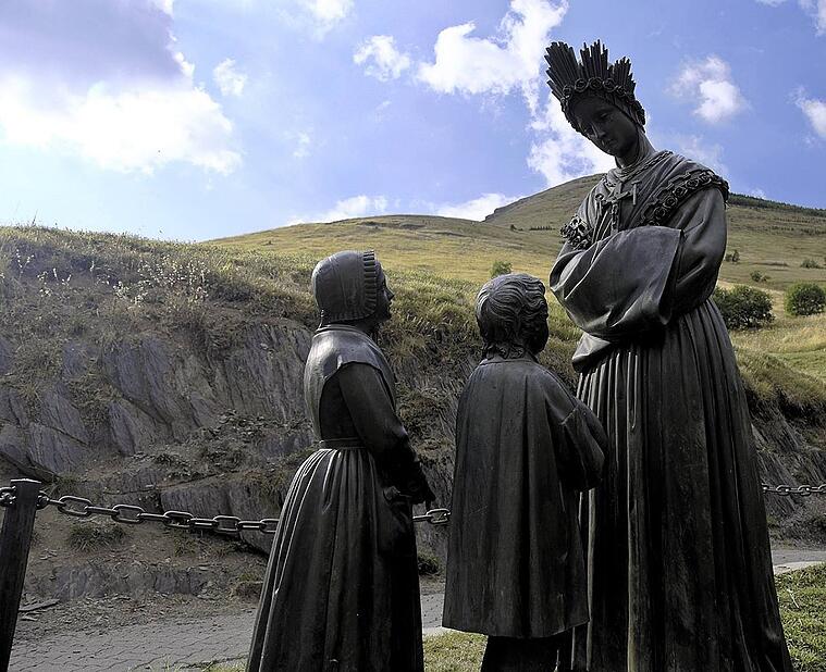 Bloy war noch zu Fuß oder mit Muli unterwegs. Der Aufstieg dauerte einen halben Tag. Oben erwarteten ihn damals schon die 1865 errichtete Basilika und die schönen, lebensgroßen Bronzefiguren, die an das Ereignis der Erscheinung erinnern sollen.