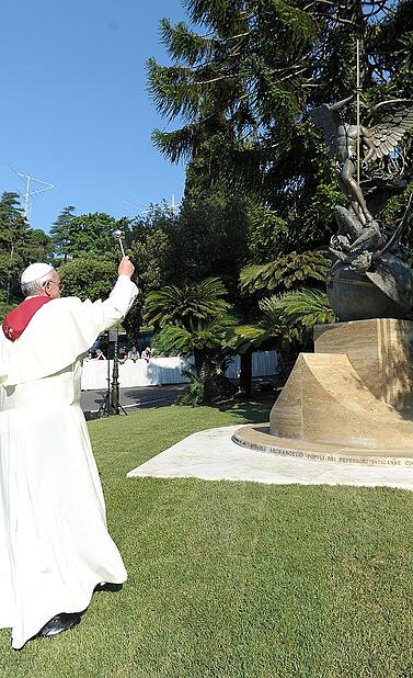 Die Einweihung der Skulptur des heiligen Michael im Sommer 2013 verband der Papst mit einer religiösen Zeremonie, der eindringlichen Bitte um den Schutz des Vatikans durch den himmlischen Heerführer: „Dadurch, dass wir dem heiligen Erzengel den Staat der Vatikanstadt weihen, bitten wir ihn darum, uns vor Satan zu verteidigen und ihn hinauszuwerfen.“