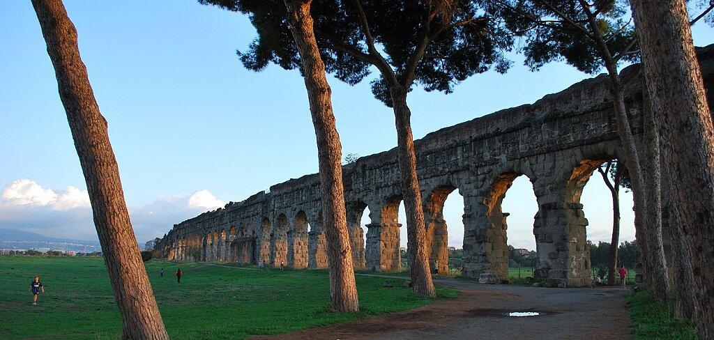 Wer es lieber ursprünglicher mag und gerne auf den Spuren der alten Römer wandeln möchte, sollte unbedingt den „Parco degli Acquedotti“ besuchen. Der „Parco degli Acquedotti“ ist ein Teil des Regionalparks der „Appia Antica“ und erstreckt sich zwischen der Via Appia und der Via Tuscolana auf einer Fläche von 240 Hektar im Südosten Roms. Zwar etwas weiter draußen gelegen, erreicht man den Park mit der Metro aber dennoch ziemlich problemlos. Mit der roten Linie A geht es bis zur Haltestelle „Giulio Agricola“. Von dort gelangt man nach wenigen Gehminuten zu einem der Eingänge auf der Via Lemonia. Die Ruinen von sechs der ursprünglich elf antiken Aquädukte bestimmen das Bild des Parks und schaffen ein einmaliges Panorama. Wunderschön und beeindruckend sind die monumentalen Mauerreste der antiken Wasserleitungen immer, aber ganz besonders schön sind sie am Abend. Denn kurz vor Sonnenuntergang, wenn das Abendrot sich über die majestätischen Bögen legt und sie in goldenes Licht taucht, entsteht hier eine fast magische Stimmung.