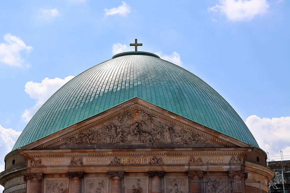 Die katholische Sankt-Hedwigs-Kathedrale befindet sich im Zentrum der Stadt als Teil des so genannten „Forum Fridericianum“, eines Platzes, der von König Friedrich II. von Preußen (1712-1786) am Anfang der berühmten Allee Unter den Linden geplant wurde. Dieser Platz wurde nach den Plänen eines der bedeutendsten deutschen Architekten des 18. Jahrhunderts, Georg Wenzeslaus von Knobelsdorff, gestaltet, der auch der Architekt der Kirche war.