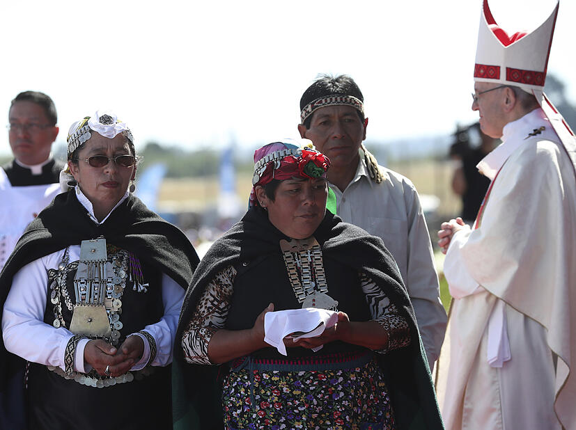 Ich danke Gott, dass er mir erlaubt, diesen schönen Teil unseres Kontinents zu besuchen, die Araucanía: ein vom Schöpfer gesegnetes Land: durch Fruchtbarkeit der riesigen grünen Felder, durch aus beeindruckenden Araukarien bestehende Wälder – das fünfte Lob von Gabriela Mistral an diesen chilenischen Boden[1] –, seine majestätischen schneebedeckten Vulkane, seine von Leben erfüllten Seen und Flüsse. Diese Landschaft erhebt uns zu Gott und es ist einfach, seine Hand in jeder Kreatur zu erkennen. Eine Vielzahl von Generationen von Menschen hat diesen Boden geliebt und liebt ihn in leidenschaftlicher Dankbarkeit. Und ich möchte innehalten und auf besondere Weise die Angehörigen des Volkes der Mapuche begrüßen wie auch die anderen autochthonen Völker, die in diesen südlichen Gebieten leben: die Rapanui (Osterinsel), die Aymara, die Quechua und die Atacameños und viele andere.