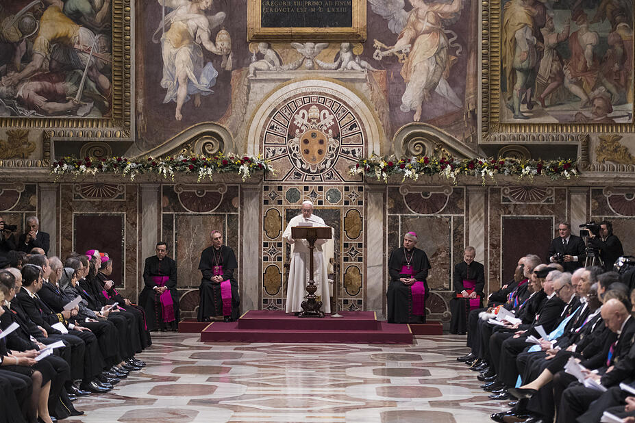 In seiner Neujahrsansprache an die Diplomaten, die als eine der wichtigsten päpstlichen Reden zur politischen Weltlage gilt, befasste sich der Papst dieses schwerpunktmäßig mit der Allgemeinen Erklärung der Menschenrechte. Wenn die katholische Kirche von Menschenrechten spreche, bedeute das für sie vor allem, immer wieder auf die zentrale Würde des Menschen, der von Gott gewollt sei, hinzuweisen. Aus christlicher Sicht bestehe daher "eine bedeutende Beziehung zwischen der Botschaft des Evangeliums und der Anerkennung der Menschenrechte gemäß dem Geist der Verfasser der Allgemeinen Erklärung der Menschenrechte", würdigte Franziskus die vor 70 Jahren verabschiedete Menschenrechtsdeklaration. Eine reduktionistische Sicht der menschlichen Person hingegen öffne "den Weg für die Verbreitung von Ungerechtigkeit, sozialer Ungleichheit und Korruption".