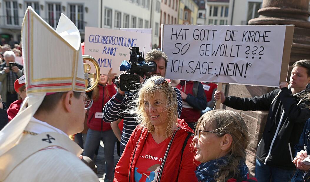 Im Anschluss an die heilige Messe im Freiburger Münster am Sonntag überreichte die Gruppe von Demonstrierenden einen Katalog mit Forderungen an den Freiburger Bischof Burger. „Ich habe die Botschaft vernommen und werde mich weiter für die Förderung von Frauen in der Kirche einsetzen“, entgegnete dieser. „Eine Kirche ohne Frauen ist undenkbar.“
