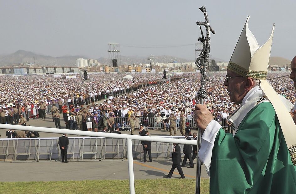 »Mach dich auf den Weg und geh nach Ninive, der großen Stadt, und rufe ihr all das zu, was ich dir sagen werde!« (Jona 3,2). Mit diesen Worten wandte sich der Herr an Jona und setzte ihn in Richtung dieser großen Stadt in Bewegung, die kurz davor war, wegen ihrer vielen Übel zerstört zu werden. Auch im Evangelium erblicken wir Jesus, wie er nach Galiläa unterwegs ist, um seine frohe Botschaft zu verkünden (vgl. Mk 1,14). Beide Lesungen zeigen uns, wie Gott auf die Städte von gestern und heute zugeht. Der Herr macht sich auf den Weg: Er geht nach Ninive, nach Galiläa … nach Lima, nach Trujillo, nach Puerto Maldonado … hierher kommt der Herr. Er macht sich auf, um in unsere persönliche, konkrete Geschichte einzutreten. Das haben wir vor kurzem gefeiert: Er ist der Immanuel, der Gott, der immer mit uns sein will. Ja, hier in Lima, oder dort, wo du lebst, im gewohnheitsmäßigen Arbeitsalltag, in der vielversprechenden Erziehung der Kinder, unter deinem Sehnen und Bemühen; in der Vertrautheit des Heims und im ohrenbetäubenden Lärm unserer Straßen. Dort, inmitten der staubigen Wege der Geschichte, kommt der Herr, um dir zu begegnen.