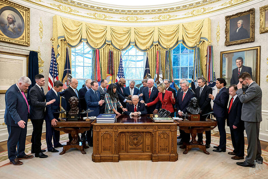 Für Aufsehen sorgte jüngst auch ein Treffen im „Oval Office“, bei dem mehrere evangelikale Geistliche ihre Hand auf den US-Präsidenten Donald legten und für „Gnade und Schutz für unsere Truppen und all unsere Männer, die in den Streitkräften dienen“, beteten. DT/mlu