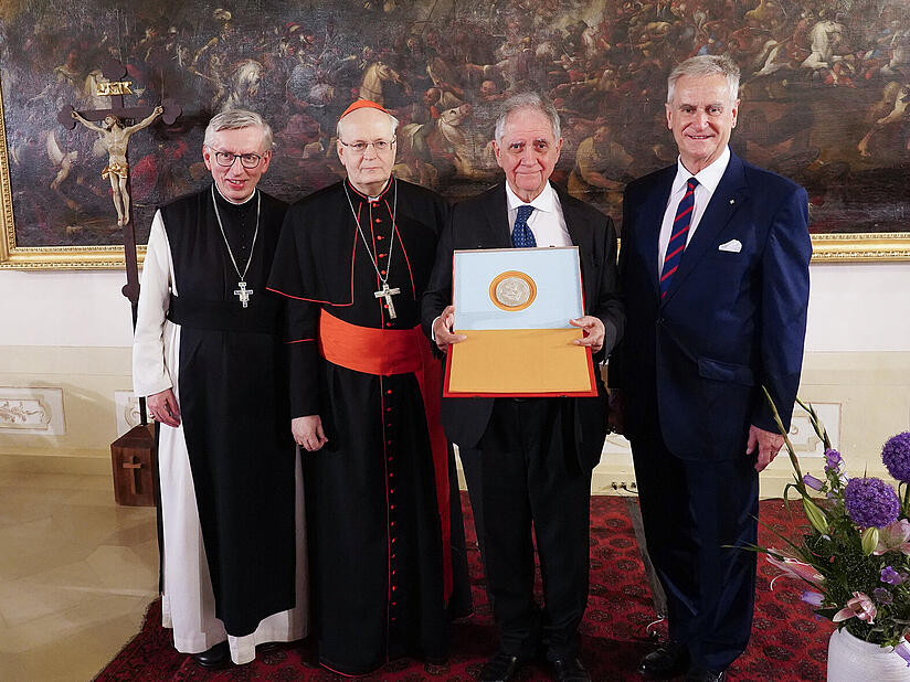 Der italienische Philosoph und Politiker Rocco Buttiglione ist am Freitag im österreichischen Zisterzienserstift Heiligenkreuz mit dem Thomas-Morus-Preis ausgezeichnet worden. Die Auszeichnung wird vom „Alten Orden vom St. Georg“ an Persönlichkeiten verliehen, die im Sinn des heiligen Thomas Morus nicht der Macht, sondern dem Ideal der Gerechtigkeit dienen. Als Laudator dankte der Primas von Ungarn und Erzbischof von Esztergom-Budapest, Kardinal Peter Erdö, Buttiglione für sein christliches Bekenntnis und seine Konsequenz.