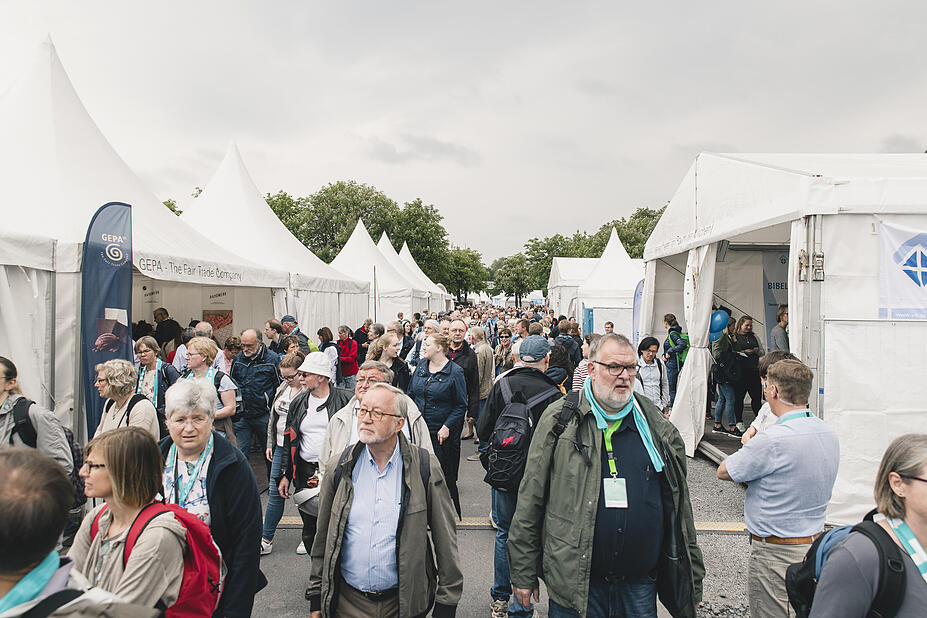 Auf der Medienmeile findet man dann das Publik-Forum neben Radio Horeb und zwischen dem Christlichen Medienverbund und dem Deutschlandradio die Deutsche Fernsehlotterie. Auch auf der Präsentationsmeile ist jedes Los ein Hauptgewinn: Ob „Die Volksbanken im Kreis Steinfurt“, die Gemeindebriefdruckerei oder die „Versicherer im Raum der Kirche“ - es ist für alle und alles gesorgt. Katholisch eben.