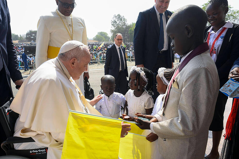 In seiner Rede am 04. Februar in der „Freedom Hall“ im südsudanesischen Juba hat sich Papst Franziskus mit Dankbarkeit und Mitgefühl an binnenvertriebene Flüchtlinge wie an humanitäre Unterstützer gewandt. Er reagierte dabei auf die Zeugnisse von Kindern, die im Südsudan aus ihrer Heimat vertrieben wurden und in Flüchtlingslagern aufgewachsen sind.