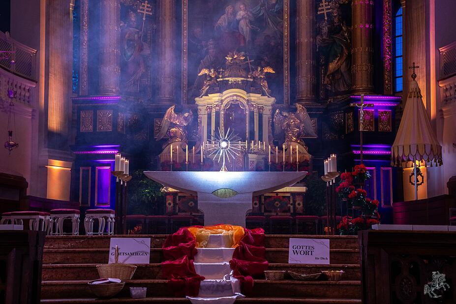 Der erste Tag endet mit einem „Abend der Barmherzigkeit“. Die katholische Influencerin Tini Brüning gibt ein gewohnt engagiertes Glaubenszeugnis. Danach wird das Allerheiligste ausgesetzt. Die Anbetung vollzieht sich allerdings nicht in Stille. Während die Gläubigen vor ihrem Herrn knien, spielt eine Band Pop-Melodien, die mir süßlich und pathetisch vorkommen, und singt dazu fromme Texte. Im hinteren Teil der Basilika haben sich derweil „Gebetsteams“ formiert. Die Augen in konzentrierter Gespanntheit geschlossen, die Häupter leicht geneigt, legen sie die Hände auf die Köpfe jener, die mit ihren Anliegen zu ihnen kommen und schließen sie so, auch körperlich, ins gemeinsame Gebet ein. Charismatisches Flair erfüllt das Gotteshaus. Was wohl der heilige Papst Pius X., der es in den Rang einer Basilica minor erhoben hat, dazu sagen würde?