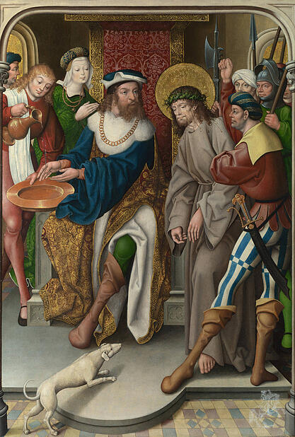 Pilatus repräsentiert darin den monarchischen Ansatz, er ist als Statthalter der Provinz Judäa vom Kaiser eingesetzter Verwalter mit allen Vollmachten. Aus Angst vor der Menge wird er Jesus zum Tode verurteilen, wenngleich er zuvor noch keine Schuld an ihm findet. Das Volk droht ihm, er sei kein Freund des Kaisers und stellt so seine Macht infrage, sollte er dem Töungswunsch der Menge nicht folgen. Aus Angst um seine Macht lässt er Jesus töten.