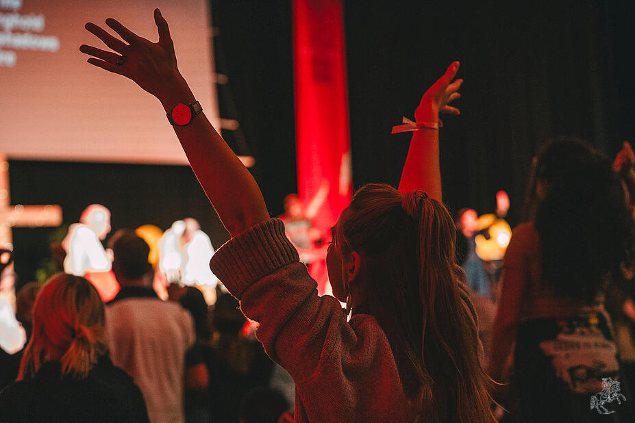 Jung und fröhlich. So wirkt die erste „Feuerkonferenz“ der Loretto-Gemeinschaft von Anfang an. Da liegen sich von weither angereiste Jugendliche beim Wiedersehen in den Armen, laden Wildfremde einander spontan zum Mittagessen ein, stimmen beim Lobpreis der ebenfalls jungen Band auf der Bühne spontan viele im Publikum ein, recken sich viele Hände zum Gebet in die Höhe. All das mag kein Alleinstellungsmerkmal sein; auffallend ist solch junge Fröhlichkeit in der Kirche des deutschsprachigen Raums heute gleichwohl.