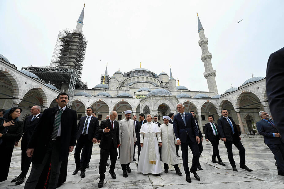 Der Einladung zu einem Moment des Gebets entzog er sich, wovon kirchlichen Agenturen völlig überrascht waren. Die hatten fest damit gerechnet, dass Leo XIV. – wie seine Vorgänger Benedikt XVI. und Franziskus – in der „Blauen Moschee“ in stiller Versenkung innehalten würde, was dann die einen als innerliches Gebet, die anderen als Meditation interpretieren könnten. Doch Leo XIV. vermied jede Missverständlichkeit, so als wollte er zeigen, dass es ohne Anerkennung Christi im Sinne des Bekenntnisses von Nicäa auch kein gemeinsames Beten geben kann. Für seine muslimischen Begleiter war das sichtlich kein Problem – ebenso wenig wie das silberne Brustkreuz, das der Papst beim Moscheebesuch trug.