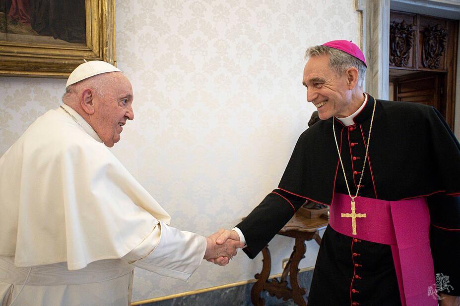 Es brauche „einfach seine Zeit, damit schmerzende Wunden verheilen konnten.“ Auch er selbst, so Gänswein, habe „Fehler gemacht, auch in der Zusammenarbeit mit Papst Franziskus“. Aber Gerüchte über Spannungen zwischen ihm und Papst Franziskus seien „Schnee von gestern“, das Verhältnis „entspannt und gesund“. Nun halte er es wie der Apostel Paulus: „Ich vergesse, was hinter mir liegt, und strecke mich nach dem, was vor mir liegt.“