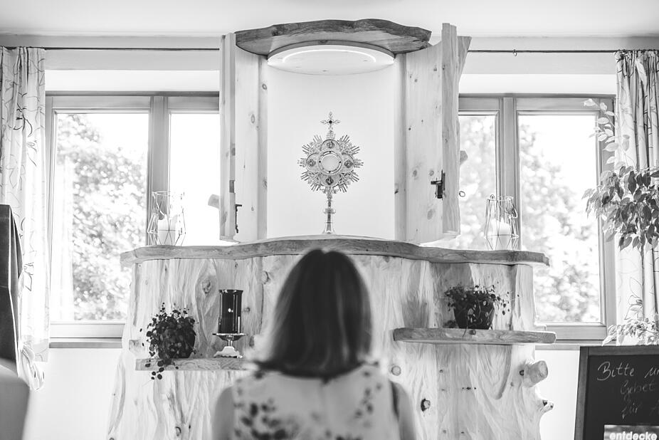 Seit vergangenem Jahr gibt es vermehrt Eucharistische Anbetung im Pfarrverband Pinzgau-Quellen, denn „während Corona war fast nichts möglich, Anbetung aber schon“. Waren es früher zwei Anbetungswochen pro Jahr, wird das ausgesetzte Allerheiligste nun zwei bis drei Tage pro Woche angebetet – der neue Tabernakel ist aus Zirbenholz und steht in einem umgebauten Sitzungssaal.
