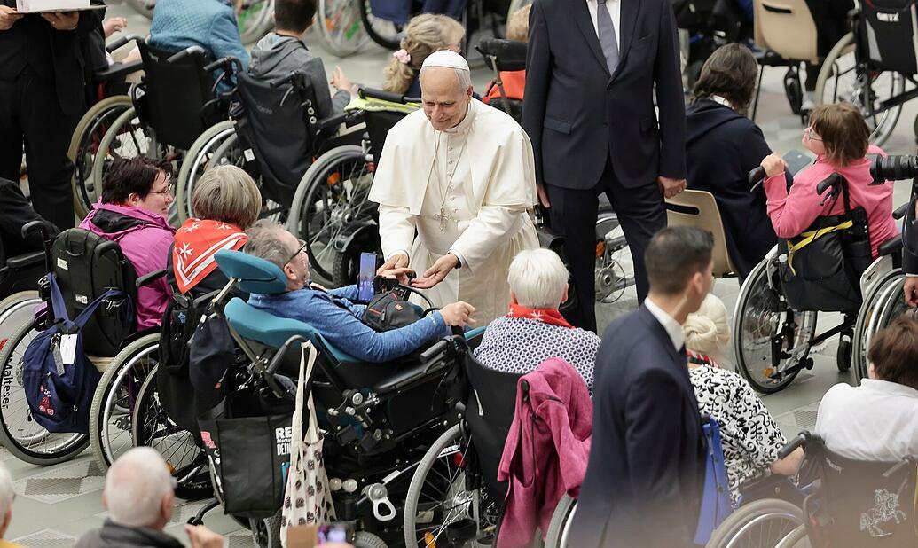 Für viele Teilnehmer war aber die Begegnung mit Leo XIV. der Höhepunkt der Wallfahrt. Denn der Papst nahm sich vor der allgemeinen Generalaudienz am Mittwochvormittag auf dem Petersplatz die Zeit, um mit den Behinderten samt ihren Betreuern eigens in der Audienzhalle des Vatikans zusammenzukommen. Der Papst begrüßte die Wallfahrer zunächst mit einem „Guten Morgen“ und betete mit ihnen ein Ave Maria auf Deutsch. Die Behinderten in ihren Rollstühlen und ihre Begleiter blickten gebannt zum Papst auf der Bühne der Audienzhalle.
