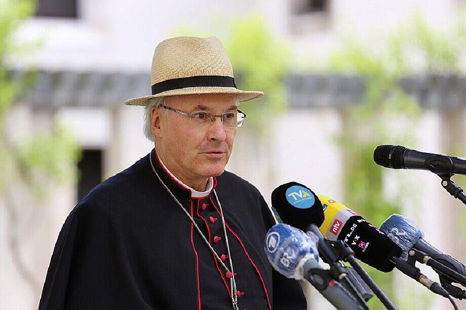 Der Regensburger Bischof Rudolf Voderholzer hat eine positive Bilanz zum überraschenden Besuch des emeritierten Papstes Benedikt XVI. in Regensburg gezogen. Mit der Rückreise in den Vatikan am späten Vormittag endete „ein unvorhergesehener, auf die Schnelle zu planender, für alle Beteiligten herausfordernder aber letztlich hervorragend verlaufener und vor allem hoch emotionaler Besuch“, so Voderholzer in einer Stellungnahme, die er im Garten des Bischöflichen Ordinariats in Regensburg abgab. Er sei sehr erleichtert und freue sich, dass die Begegnung sowohl für den emeritierten Papst wie auch für seinen Bruder „sehr aufbauend und stärkend“ gewesen sei, und dass der Aufenthalt ohne Zwischenfälle über die Bühne ging.