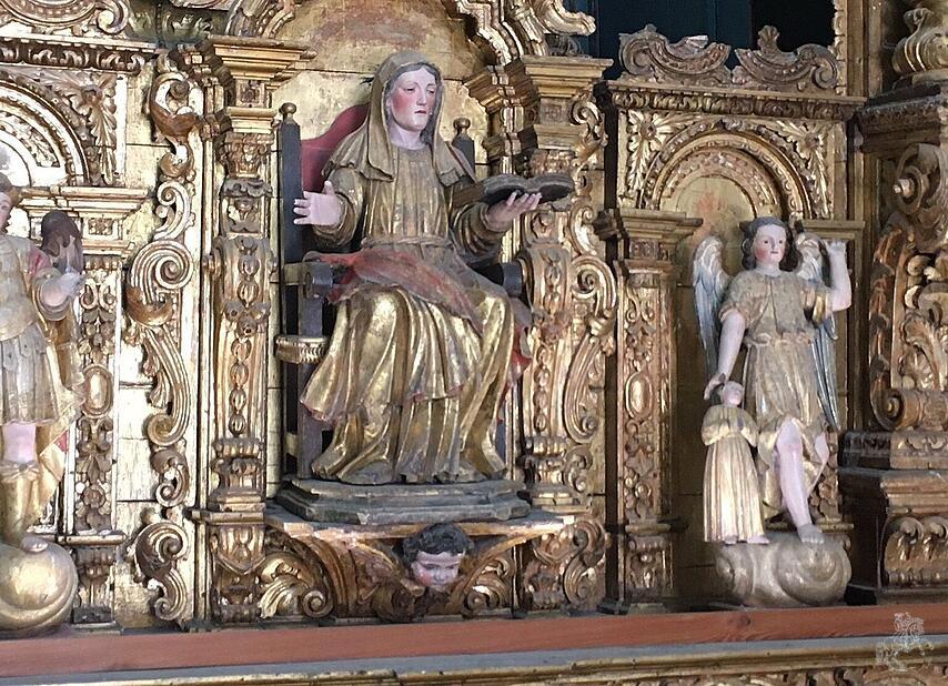 Neben den Weltjugendtagspilgern treffen sich dieses Wochenende auch noch Jazz-Enthusiasten in der Altstadt von Loulé. Im Innenhof des Schlosses finden jeden Abend Konzerte statt. Fast direkt gegenüber ist ein unscheinbares Tor. Es führt in eine grottenartige, kleine Wallfahrtskapelle mit explosiven Gold-Ornamenten und blau bemalten Kacheln, die ein Bild der Muttergottes umrahmen. Nossa Senhora da Conceição – unsere liebe Frau der Empfängnis. Wie überall in Loulé ist jemand angestellt, der Fragen beantwortet und Postkarten verkauft. Trotzdem ist es ein stiller Ort. Schattig, ein Fluchtort vor den Sonnenstrahlen, die genauso intensiv wie die Eindrücke dieser Tage der Begegnung vor dem Weltjugendtag auf uns einströmen.