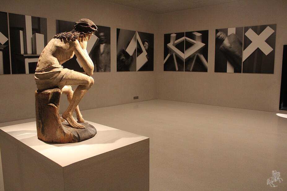 Gemeinsames wird ergreifend erlebbar im Raum 21. In Form einer lebensgroßen Holzskulptur (15. Jahrhundert) blickt der gegeißelte Gottessohn auf ein wie ein zeitgenössisches Triptychon anmutendes Altarbild mit der gefiederten Schlange (Plumed Serpent, 1969) von Paul Thek (1933 bis 1988). Als „Ecce homo“ steht der von Folter gezeichnete Christus mitten im Raum und, noch wichtiger, inmitten der Besucher. Einen ähnlich spannenden Dialog in dieser Richtung erleben die Besucher bereits vorher im Raum 8. Ein zutiefst von Leiden und Folter gezeichneter „Christus in der Rast“ (15. Jahrhundert) in Erwartung seiner Kreuzigung zeigt die ganze Verletzlichkeit, ja Fragilität der menschlichen Existenz. Diese auf einem Sockel thronende Holzskulptur aus Lindenholz korrespondiert mit der 20-teiligen Großfoto-Serie „Transzendentaler Konstruktivismus“ (1992/94) von Anna und Bernhard Blume.