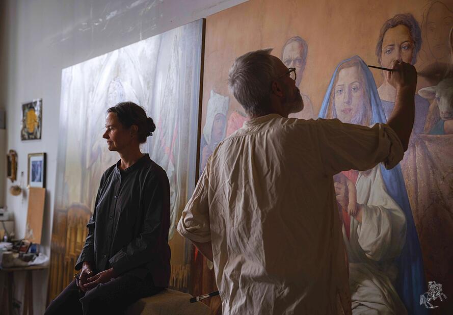 Smaczny erhält einen ungewöhnlich intimen Zugang zu Triegel, der nicht nur sein Atelier öffnet, sondern über Glauben, Kirche und Tradition spricht. So wird der Film zugleich zum Künstlerporträt, das den Menschen hinter dem Künstler sichtbar macht: DDR-Biografie, Florenz-Reise nach dem Mauerfall, der alte Streit, ob man heute „noch“ figürlich malen dürfe. Man hätte gern noch mehr darüber erfahren, wie die Wahl auf den einstigen Atheisten fiel, der 2010 Benedikt XVI. porträtierte, bereits zuvor kirchliche Aufträge erhielt und 2014 in Dresden katholisch getauft wurde.