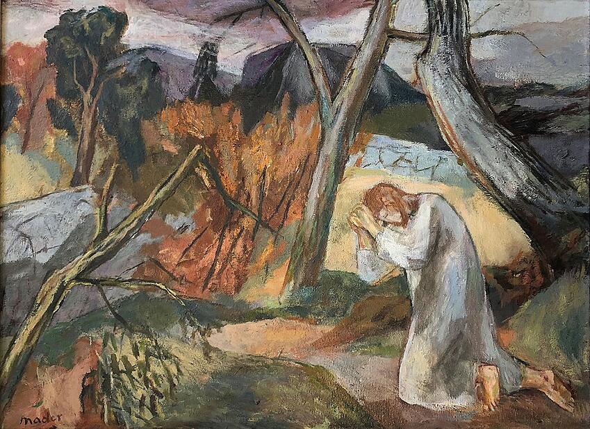 Als der 24-Jährige aus dem niederbayerischen Landshut stammende Maler Joseph Mader mit seinen 14 großformatigen Kreuzwegdarstellungen 1930 zum Meisterschüler der Kölner Werkschulen ernannt wird, legt er damit gleichzeitig sein persönliches Glaubenszeugnis nieder; das wurde ihm Richtschnur und Kraftquelle durch sein notbehaftetes Künstlerleben hindurch. Denn nur kurz währt Maders Erfolg, als er 1930 in seine bayerische Heimat zurückkehrt und sich in München als freischaffender Maler niederlässt. Dort wird der Galerist Günther Franke auf den außergewöhnlich talentierten Maler und Zeichner aufmerksam und stellt ihn in seiner Galerie aus. Der Münchner Verleger Reinhard Piper unterstützt ihn und der Kunstkritiker Wilhelm Hausenstein sieht in Mader einen Maler in der Nachfolge Max Beckmanns. Er gilt als Nachwuchshoffnung in der deutschen Malerei. Aber mit der Machtergreifung der Nationalsozialisten endet Joseph Maders Aufstieg in der deutschen Kunstszene.