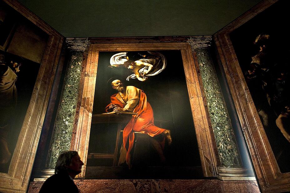 Auch Genies müssen sich beugen: „Immer wieder musste Caravaggio nachbessern oder neue Versionen seiner Bildwerke anfertigen, denn manchem Auftraggeber war Caravaggio mit seiner Kunst zu modern. Hin und wieder etwas ausgebremst, revolutionierte Caravaggio dennoch die Malerei grundlegend. Keiner vor ihm hätte es gewagt, eine heilige Szene, wie die der Berufung des Matthäus durch Jesus, anstatt des üblichen heiligen Rahmens in eine Taverne zu platzieren. Auch mit der Wahl seiner Modelle, unter die sich Prostituierte ebenso mischten wie Straßenjungen und Bettler, beschritt Caravaggio Neuland und sorgte für Aufsehen.“