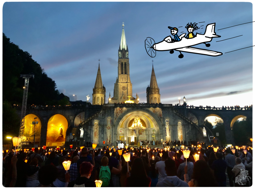 Opa: Am 16. Juli 1858. Also ungefähr fünf Monate nach ihrer ersten Begegnung. Bei dieser letzten Erscheinung sagte Bernadette, sie habe die Muttergottes noch nie so schön gesehen. Und ja, Bob, wir können gern einmal gemeinsam nach Lourdes fahren. Dort können wir mit vielen anderen Pilgern Wasser an der Grotte abfüllen und an einer Prozession teilnehmen.