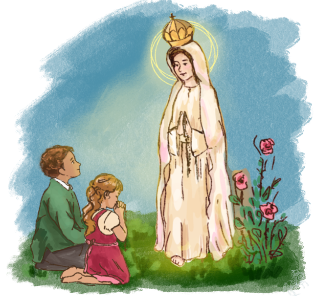 „Wow“, sagte Leni ehrfürchtig. „Das ist ja wie im Himmel!“ Anna nickte. „Ja, und das war nur der Anfang. Am 13. Mai 1917, als die drei Kinder gerade Schafe hüteten, erschien ihnen über einem Eichenbaum dann zum ersten Mal die Muttergottes – eine wunderschöne Frau in einem weißen Kleid mit einem Rosenkranz. Sie blickte die Kinder voller Liebe an und bat sie, häufig den Rosenkranz zu beten und an jedem 13. des Monats wiederzukommen. Lucia spürte einen großen inneren Frieden und fragte sie, ob sie aus dem Himmel sei – und sie antwortete: ‚Ja, ich komme vom Himmel.’“ „Aber nicht alle glaubten den Kindern“, fuhr Anna fort. „Besonders die Behörden waren sehr misstrauisch. Sie behaupteten, die Kinder hätten alles erfunden. Im August sperrte man sie sogar ins Gefängnis. Man versuchte, ihnen alles auszureden, und drohte sogar, sie in kochendes Öl zu werfen – aber sie blieben standhaft.“ – „Aber das waren doch nur Kinder!“, rief Maxi empört. „Da hätte ich Angst gehabt.“ – „Mit den anderen Gefangenen – das waren richtige Verbrecher – haben sie sogar den Rosenkranz gebetet“, sagte Anna stolz. „Und Tante Lucia erzählte später, dass sie dort besonders stark gespürt habe, dass die Muttergottes bei ihnen war.“