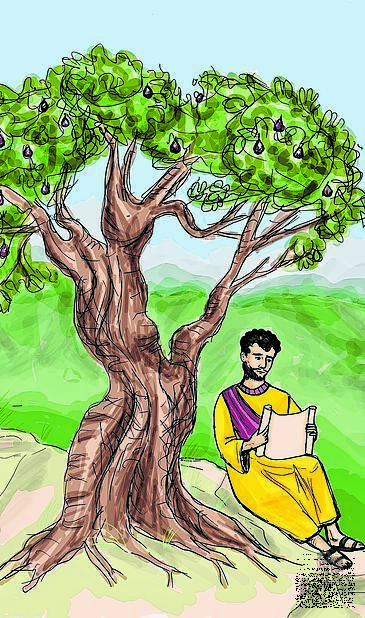 Nathanael sitzt unter dem Feigenbaum. Dort ist es schön kühl, da der Baum mit seinen großen Blättern viel Schatten spendet. In Israel kann es sehr heiß werden. Hier hat er außerdem etwas Ruhe und kann allein sein. Was er genau unter dem Feigenbaum getan hat, berichtet der Evangelist Johannes nicht. Doch es kann sehr gut sein, dass er mit Gott gesprochen hat. Sicher hat ihn vieles bewegt. Das Leben war nicht leicht unter der Herrschaft der Römer. Sie behandelten das jüdische Volk sehr schlecht, nahmen ihnen Geld und Freiheit. Wann würden sich die Schriften endlich erfüllen? Wann würde endlich der Messias kommen und sie befreien? Vielleicht betete Nathanael mit ganzem Herzen: Siehst du uns, Gott? Hast du uns nicht vergessen? Wann kommst du, Messias?