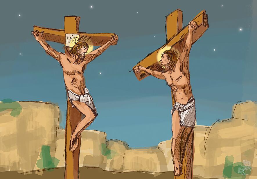 Neben Dismas hängt noch ein zweiter Verbrecher am Kreuz. Auch er leidet. Auch er hört Jesus. Aber er sagt: „Rette dich und uns!“ Er will aus der Situation heraus. Er will die Schmerzen loswerden. Aber sein Herz? Das hat sich nicht verändert.