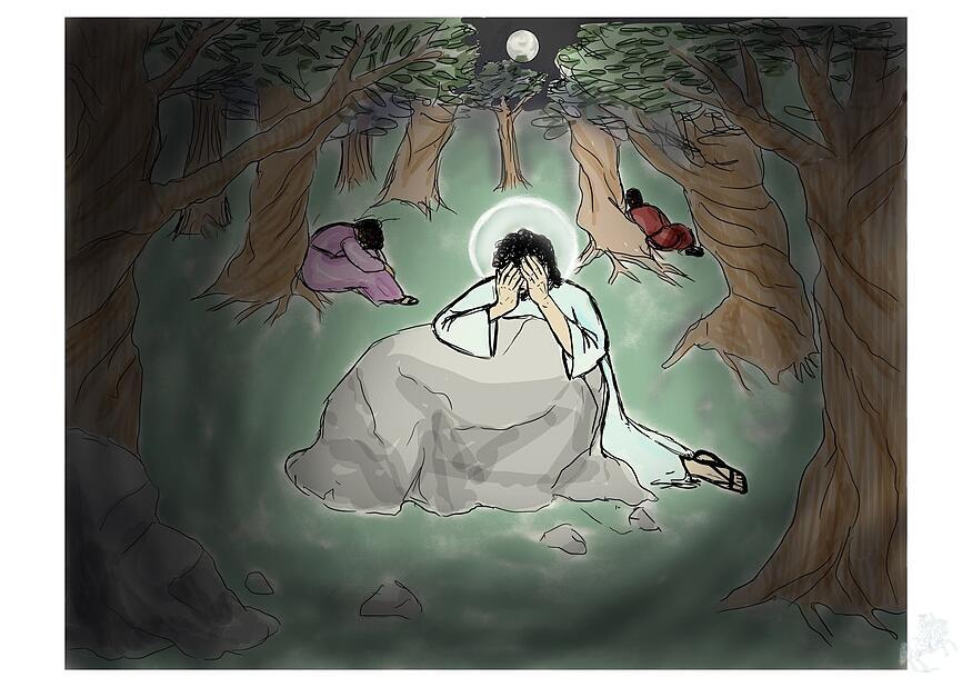 Das heißt aber nicht, dass das für Jesus ein Kinderspiel ist. Heute, am Gründonnerstag, sehen wir besonders gut, dass es für Jesus auch schwer sein kann, dem Willen seines Vaters zu folgen. Als Jesus mit seinen Jüngern das letzte Abendmahl vor seinem Tod gefeiert hat, ging er mit seinen Jüngern zu einem Grundstück, das Getsemani heißt. Dort trägt er den Jüngern auf, zu wachen, während er alleine ein Stück weit vorausgeht, um zu beten.