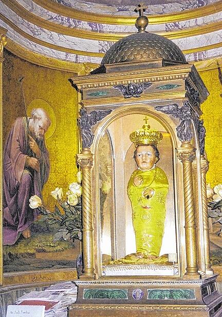 Santa Maria in Aracoeli war jahrhundertelang die Kirche des römischen Senats, der in ihr bei besonderen Anlässen Gottesdienste abhalten ließ. Im Mittelalter fanden hier sogar Sitzungen dieser altehrwürdigen Körperschaft Roms statt. Zur Basilika führen 124 Marmorstufen hinauf. Die Treppe wurde im Jahre 1348, während des Avignoner Exils der Päpste, errichtet. Sie war ein Geschenk der Römer an die Gottesmutter, der man so für die Errettung vom Schwarzen Tod, der Pest, danken wollte. Dass bis in unsere Tage so viele Menschen den beschwerlichen Weg zu Santa Maria in Aracoeli hinauffinden, ist nicht zuletzt einem Kleinod zu verdanken, das in einer Kapelle in unmittelbarer Nähe zur Sakristei aufbewahrt wird. Hier hält der „Santo Bambino“, das „Heilige Kind“, Hof. Alt und Jung, Römer und Fremde, verneigen sich hier vor einer 60 Zentimeter großen Statue des Jesuskindes. Einer Legende nach soll die Statue in Jerusalem von einem Franziskanerbruder aus dem Holz eines Olivenbaumes vom Garten Gethsemani geschnitzt worden sein. Da dem Ordensmann die nötige Farbe fehlte, um das Werk fertigzustellen, sei ein Engel erschienen, der die Arbeit beendet habe. Auch der Weg, auf dem der Santo Bambino in die Ewige Stadt gefunden hat, wird als wundersames Geschehen berichtet: Auf der Seereise musste der Franziskaner wegen eines Sturmes das Kästchen mit dem kostbaren Schatz ins Wasser werfen. Es schwamm aber hinter dem Schiff her und erreichte so den Hafen Livorno, von wo aus man es nach Rom brachte.