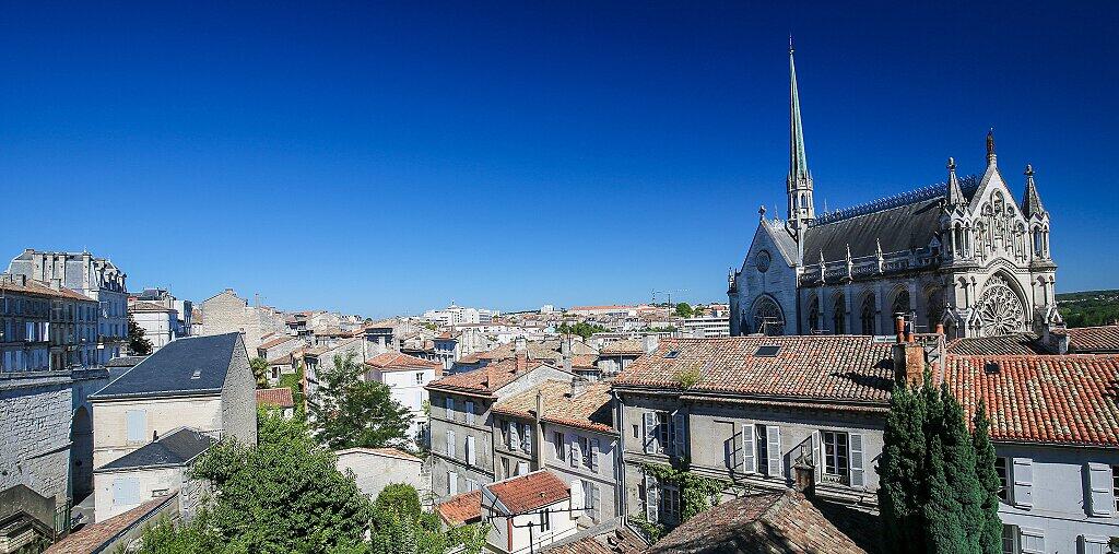 Angouleme besteht nicht aus dem Sakralerbe allein. Bonusmaterial bieten in der 42 000-Einwohner-Stadt die Markthallen, die verschlungenen Gassen, die Vielzahl illusionistischer Wandmalereien, die Ausgeh- und Gastrokultur. Im einstigen Bischofspalast ist das Stadtmuseum samt einer Kunstsammlung untergebracht, um das Rathaus und die Überbleibsel der historischen Burg (im Jahr 1492 Geburtsort von Margarete von Angouleme, Schriftstellerin und Königin von Navarra) erschlägt eine Überfülle an Blumenpracht. Und im idyllischen Fluss Charente, der sich tief unterhalb des Altstadtplateaus entlang schlängelt, baden Enten, Schwäne und Baumspiegelbilder. Dort lässt sich auf dem neuen Fernradweg „Flow Vélo“ bis zum Atlantik radeln. Doch das ist eine andere Geschichte.