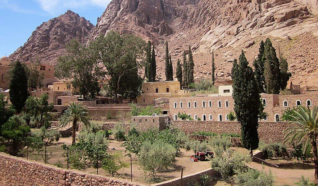 Das Kloster wurde im 6. Jahrhundert vom byzantinischen Kaiser Justinian gegründet, um Pilgern Schutz und Unterkunft zu bieten. Damals zogen tausende Eremiten, Mönche und Siedler vom Mittelmeer in den Sinai. Es ist das älteste immer noch bewohnte Kloster des Christentums, berühmt für seine Ikonen und eine der ältesten Bibliotheken der Welt. Relativ unbekannt ist, welch famosen Einfluss der Klostergarten auf seine Umgebung hatte. Denn die Zuwanderer brachten auch Gärtnerwissen mit. Sie passten es an die lokalen Begebenheiten an und die Ideen wanderten über die Klostermauern hinaus.
