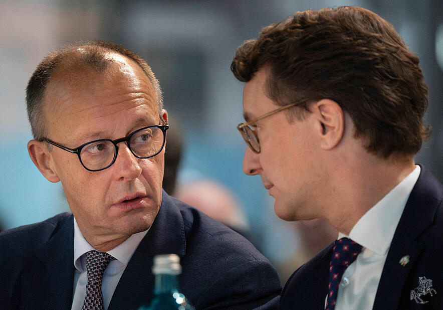 Kein Konsens besteht aber unter dem schwarzen Spitzenpersonal darüber, wie man dieses Thema zur Sprache bringen soll. Da ist einmal NRW-Ministerpräsident Hendrik Wüst. Er fordert eine „Allianz der Mitte“ bei der Lösung des Migrationsproblems und sucht die Zusammenarbeit mit der Ampel. Wenngleich er diese Bitte um Kooperation etwas harscher formuliert und als Appell an die Bundesregierung zur staatsbürgerlichen Vernunft präsentiert.