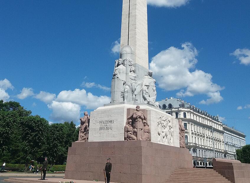 Vom Abriss bedroht war einst auch das imposante Freiheitsdenkmal am Eingang zur Fußgängerzone in Riga, das die Unabhängigkeit und den Nationalstolz des Landes verkörpert. Das Denkmal wurde 1935 zum Gedenken an die im Lettischen Unabhängigkeitskrieg Anfang des im 20. Jahrhundert gefallenen Soldaten errichtet. Der Sockelbereich des Denkmals versinnbildlicht die Grundelemente des Staates: Familie, geistiges Leben, Arbeit und militärische Sicherheit. Die Spitze des Monuments ziert eine Frauenstatue, die drei goldene Sterne hoch hält. Sie stehen für Lettlands drei historische Regionen Kurzeme (Kurland), Vidzeme (Zentral-Livland) und Latgale (Lettgallen).