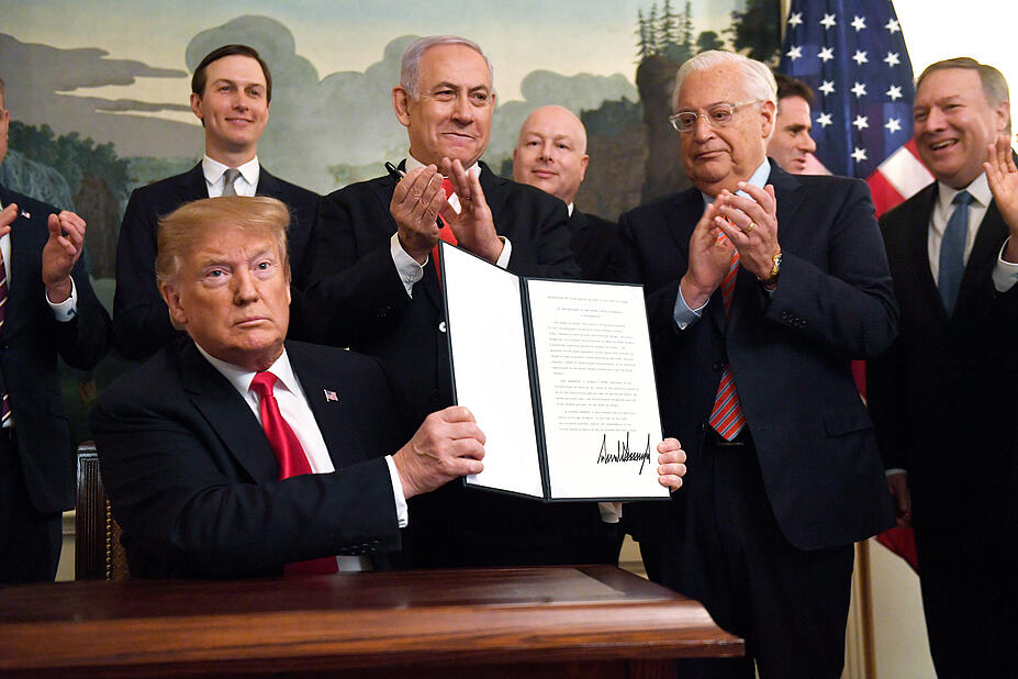 Der republikanische Präsident Trump hatte am Montag im Beisein des israelischen Ministerpräsidenten Benjamin Netanjahu im Weißen Haus ein entsprechendes Dekret unterzeichnet. Die Golanhöhen sind ein strategisch wichtiges Gebiet oberhalb des Sees Genezareth. Israel hatte die Region im Sechstagekrieg 1967 erobert und 1981 annektiert. Nach internationalem Recht gelten die Golanhöhen als von Israel besetztes Territorium Syriens.
